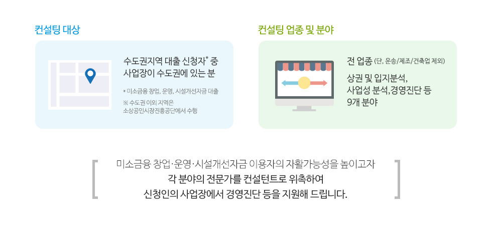 ■ 시설개선자금 : 본인 명의의 사업자 등록 후, 6개월 이상 운영중인 자영업자의 사업장 시설개선자금 지원