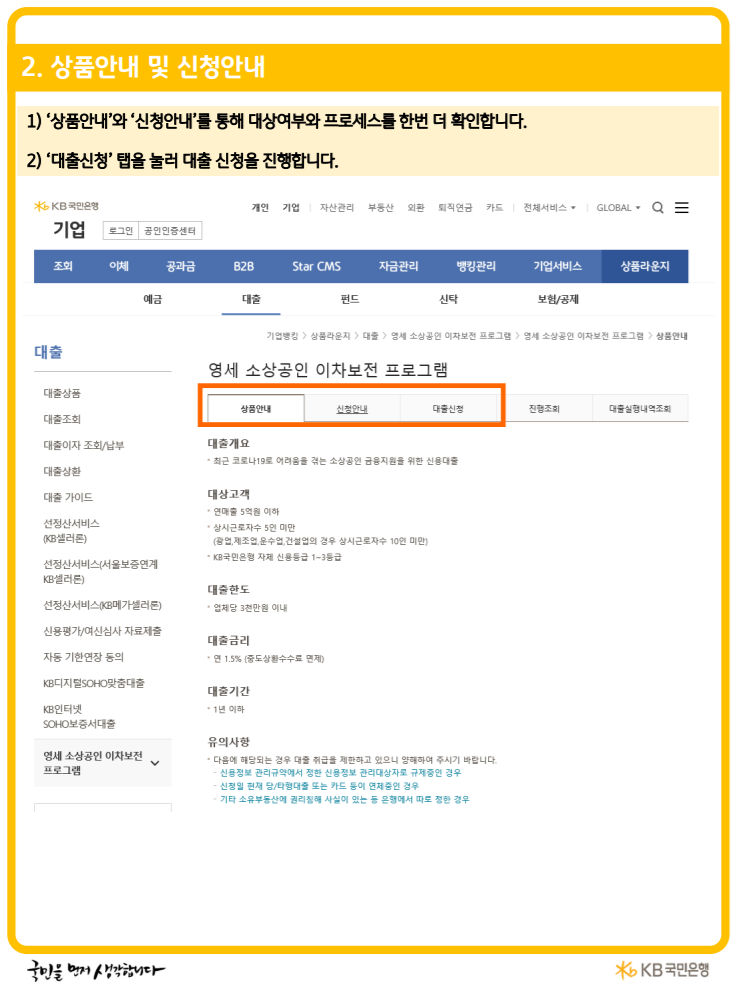 - 다른은행에서 영세 소상공인 이차보전 프로그램에 의한 대출잔액이 있거나, 대출절차를 진행중인 경우 제외