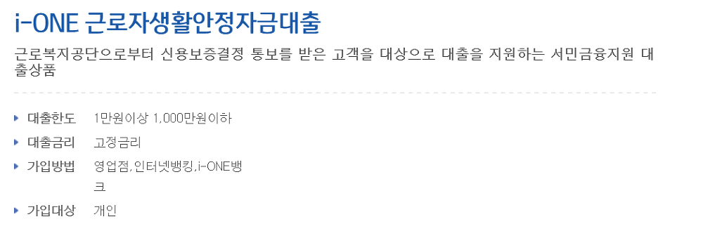 임금감소생계비 한도 1000만원 금리 1.5% 보증료 0.9% |