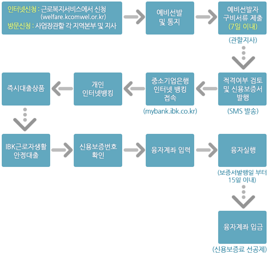 대출 신청일 현재 소속사업장에 3개월 이상 근로중(다만, 일용근로자는 신청일 이전 180일 이내에 고용보험법 시행규칙 별지 제7호 서식의 고용보험 근로내용 확인신고서에 따른 근로일수가 45일 이상인 경우)이고 융자 대상 월 소득이 181만원 이거나 전년도 월평균소득이 388만원 이하인 정규직 근로자(단, 비정규직 또는 특수형태근로종사자는 소득요건 미적용)